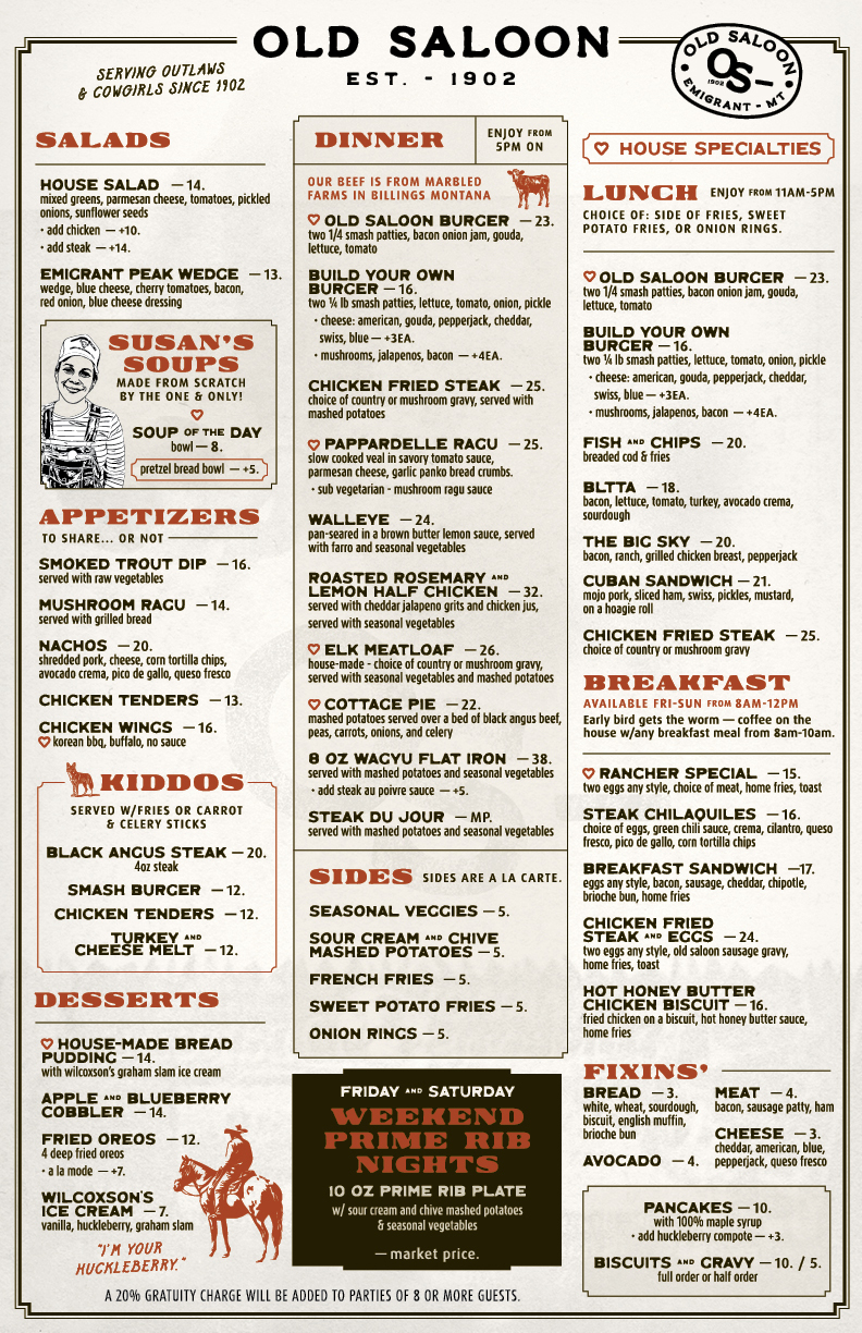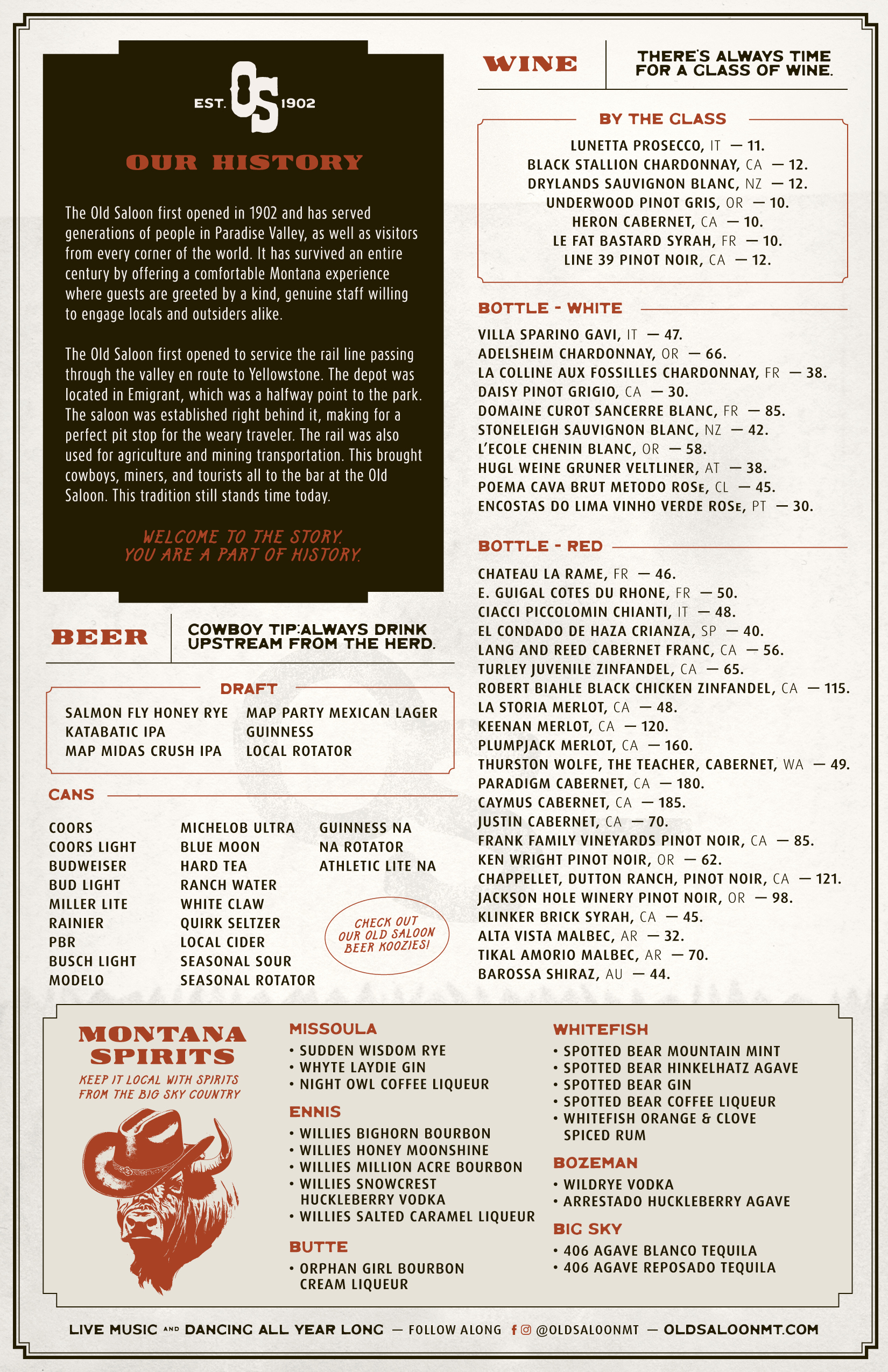 Menu Authentic western atmosphere with hearty food, cold drinks and great service. 3 Restaurant Menu Bar Menu